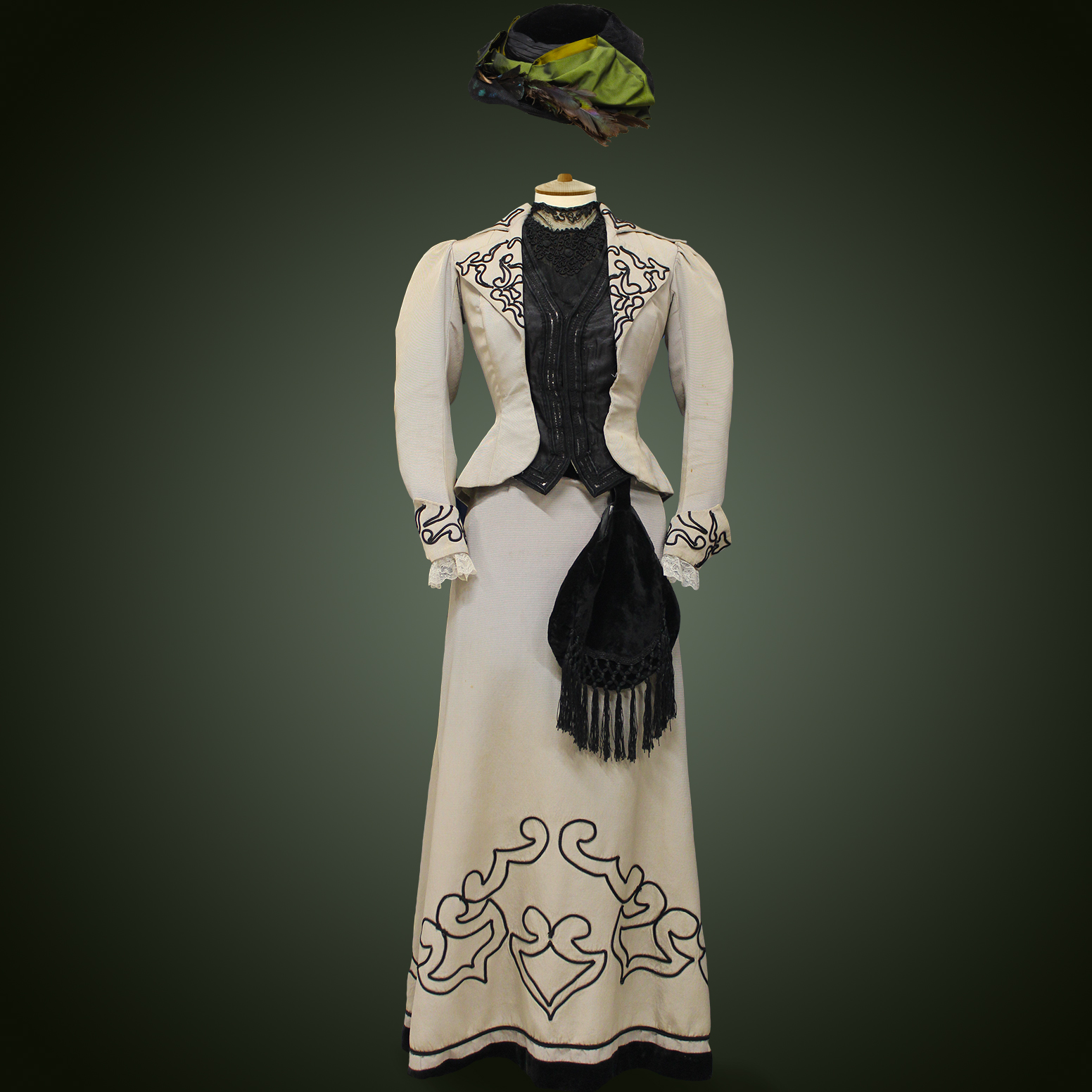 1900s Robe ivoire motifs noirs